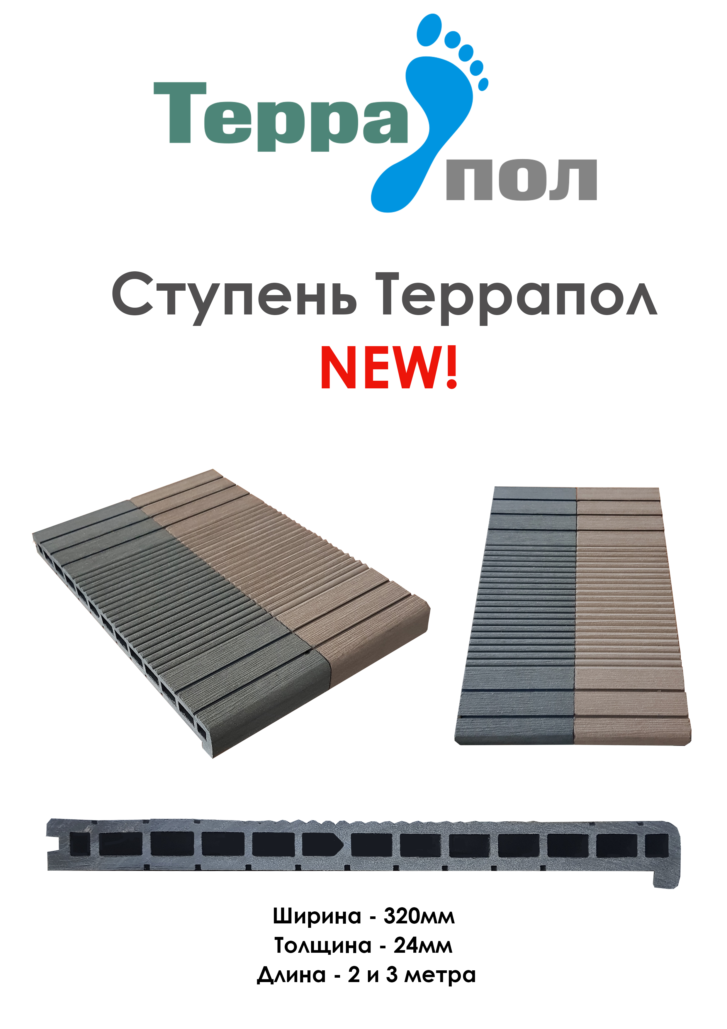 Ступень из древесно-полимерного композита на улицу, на...подробнее
