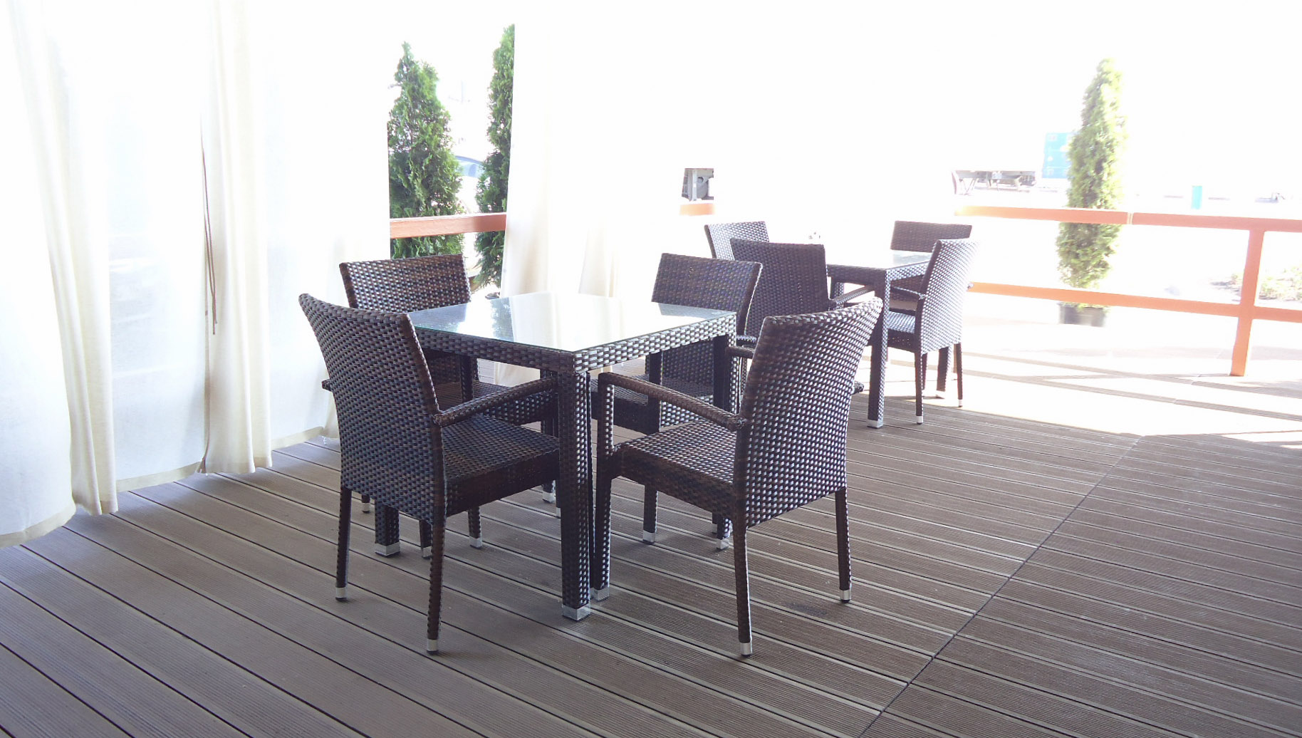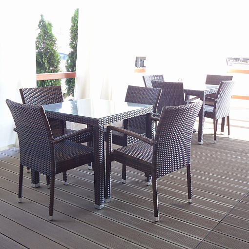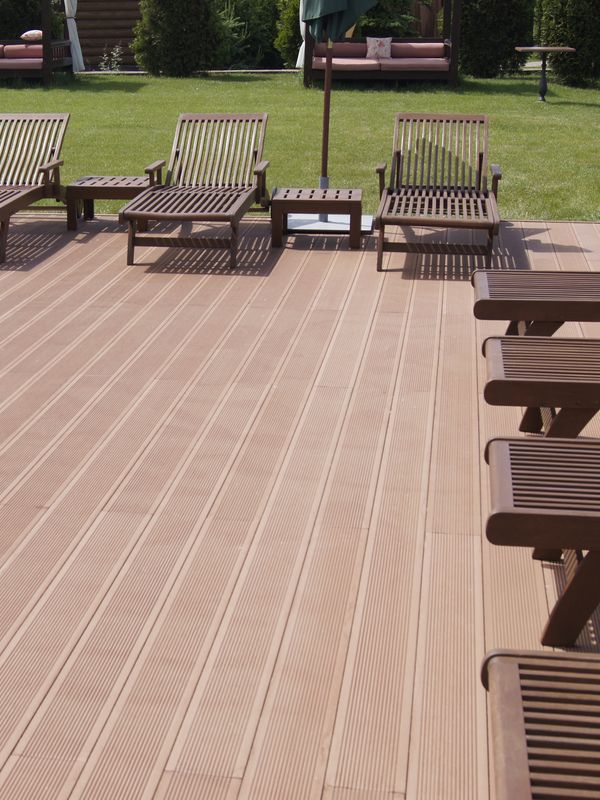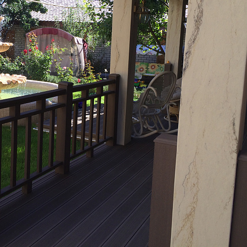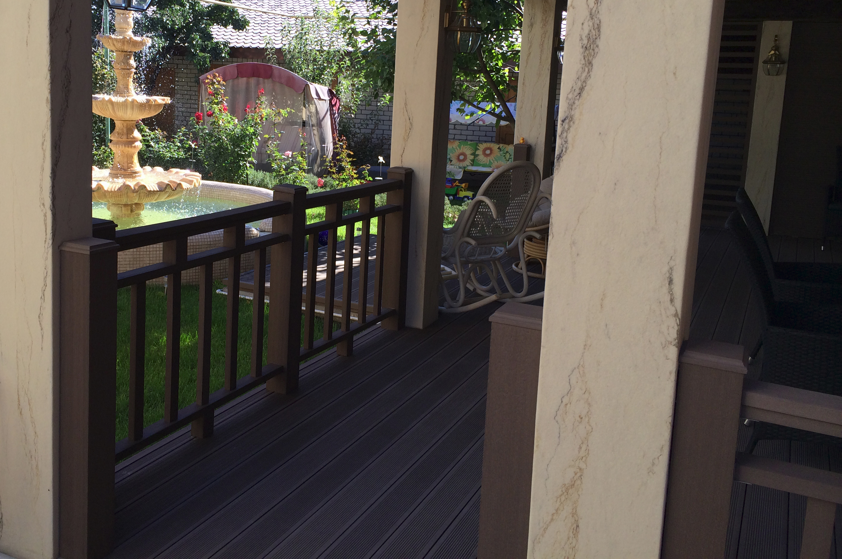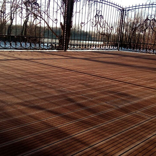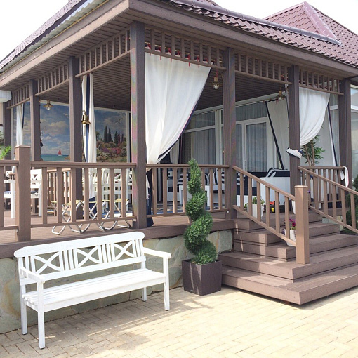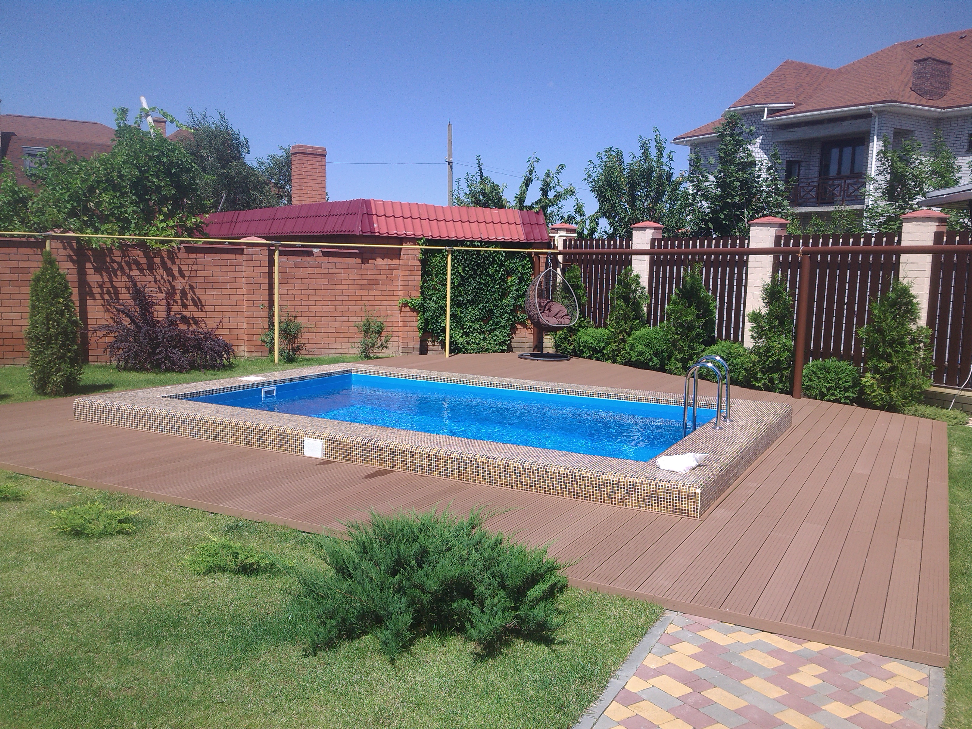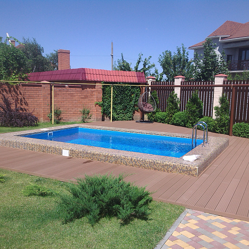 Возможна укладка террасной доски Террапол в зоне около бассейна, на даче, на летние беседки и на открытые балконы.